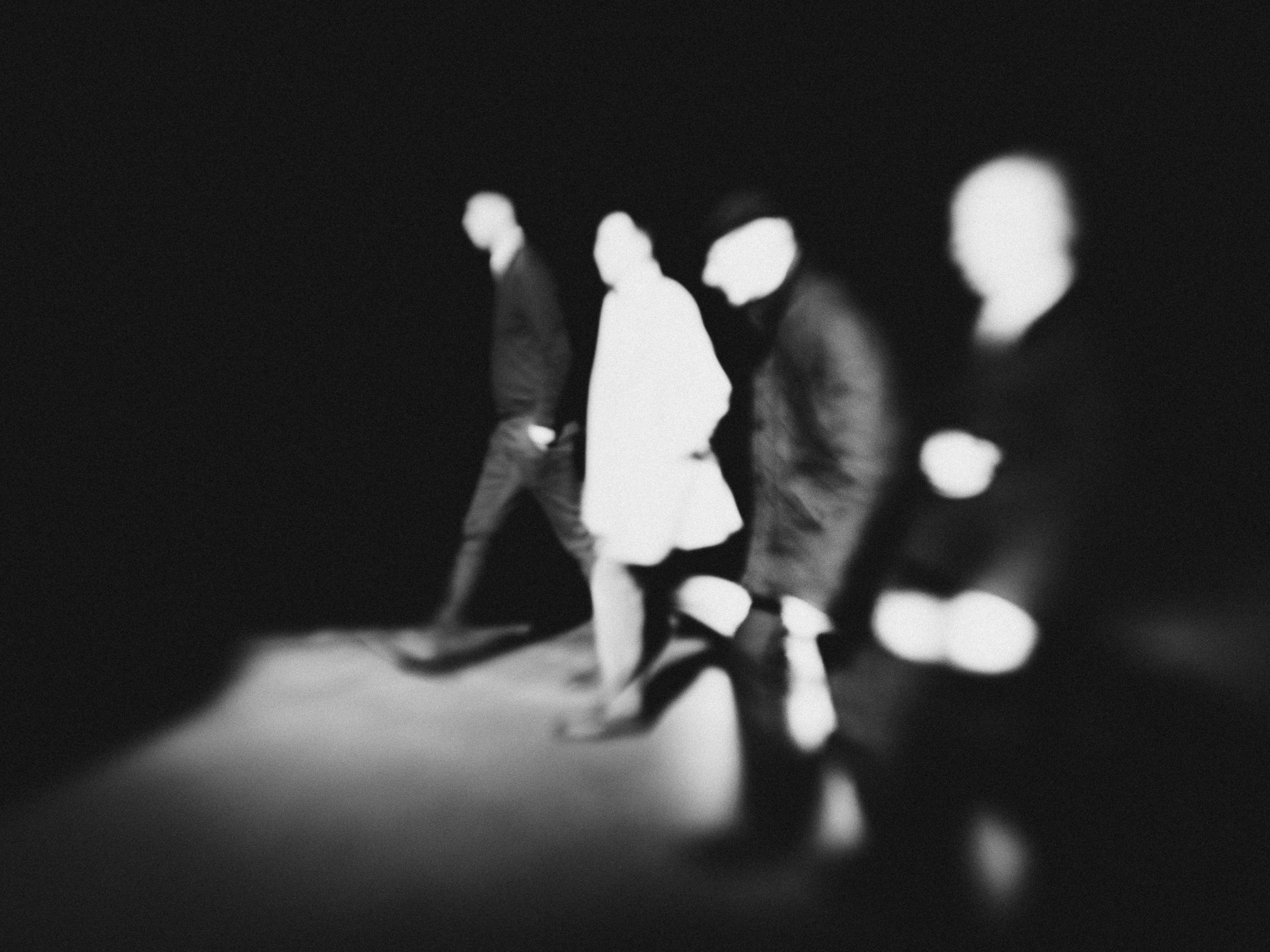 Just a moment on the street. People passing through a patch of brightness. Ordinary, on the surface, one figure in a white coat catching the light just enough to stand apart.